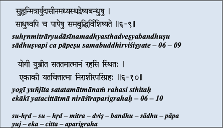 Dans ces versets, le Seigneur Kṛṣṇa nous invite à être toujours le même quelle que soit la compagnie dans laquelle nous nous trouvons, que les gens soient bienveillants, suhṛd, ou